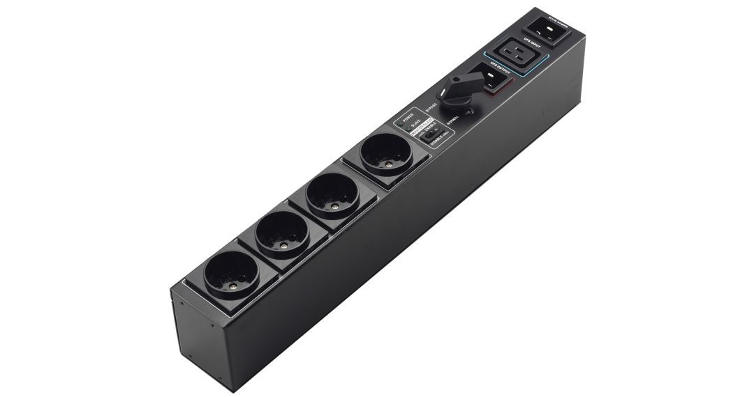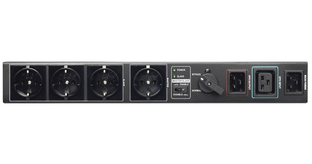 - Advantages of "Bypass Rack": - Energy saving function with "master slave" mode - When consumption is less than 20W on the master outlet, the power supply to slave outlets stops
