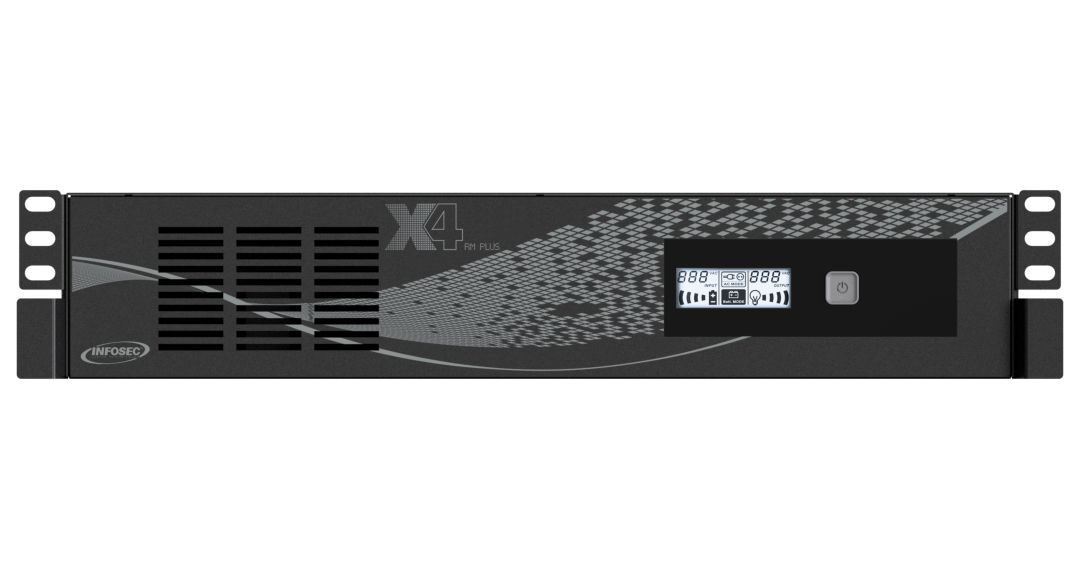 The X4 RM Plus UPS range is dedicated to the electrical protection of networks and IT loads against power supply problems and electrical disturbances. Equipped with microprocessor-controlled Line Interactive technology, X4 RM Plus UPSs offer reliable protection to your connected equipment. In the event of a power cut, the connected equipment remains on for up to 65 minutes depending on the load, which ensures service continuity and, if necessary, backup of essential data. -Built-in charger reducing battery charging time (90% in just 4 hours) and thus ensuring maximum recharging between successive power cuts -Automatic restart of the X4 RM Plus on grid power -Cold start function allowing start-up connected emergency devices in the absence of power -Automatic recharging of the batteries when power is present -These features allow the X4 RM Plus to save 50% more energy than a normal UPS Each model is equipped with both IEC outlets and FR / SCHUKO type outlets. Its USB communication port allows remote control of the UPS through the Infopower software (see description on the back), which also manages the automatic closing of files by the UPS in the event of a power failure. The X4 RM Plus also protects the ADSL line thanks to the RJ45 connectors. -On/off switch -LCD display indicating the detailed status of the UPS -Rack format allowing it to be easily integrated into a patch bay