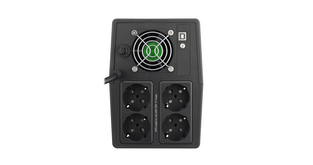- Función de ahorro de energía (Green Energy Saver): si no hay ninguna carga conectada y el SAI pasa a modo batería, este se apaga automáticamente al cabo de 5 minutos para no descargar las baterías innecesariamente (modelos 500/700/1000 VA) <br>- Función de carga automática de la batería: la batería se recarga automáticamente cuando la alimentación de red está presente y el SAI está apagado. Esta función permite que se apague el SAI cuando no estén utilizando los dispositivos conectados y seguir estando seguro de que la batería se está cargando.