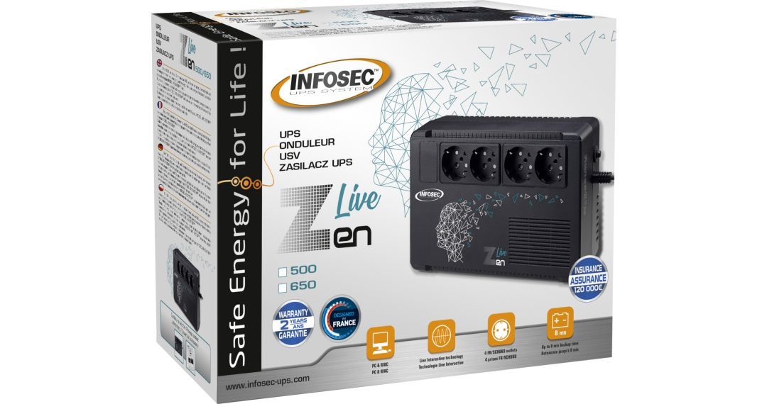 Los SAI Zen Live proporcionan energía ininterrumpida segura y fiable a dispositivos multimedia y equipos de TI de tipo terciario (ordenadores, cajas registradoras, impresoras de inyección, pantallas). Su diseño compacto y bajo peso le permiten encajar fácil y discretamente en un entorno con espacio limitado. La gama Zen Live proporciona una corriente de salida estabilizada gracias a su Auto Regulación y por lo tanto ofrece una protección completa a sus equipos conectados tanto en caso de un corte de energía como de una variación en la corriente. En caso de apagón eléctrico, Zen Live proporciona energía al equipo conectado durante 15 minutos (según el modelo y la carga conectada) permitiendo así la continuidad del servicio o la intervención del usuario alertado por la alarma del SAI.