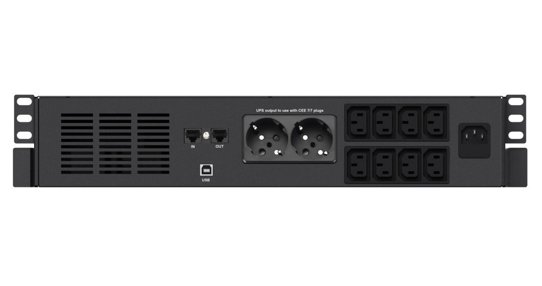 - Un interrupteur marche/arrêt <br>- Un écran LCD indique le statut détaillé de l'onduleur <br>- Son format rack lui permet de s'intégrer aisément dans une baie de brassage